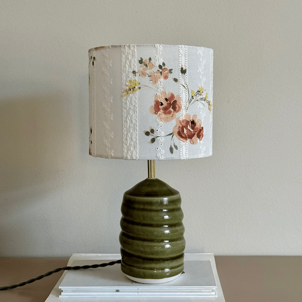 - Lampeskærm: Stof af bomuld med broderi anglaise