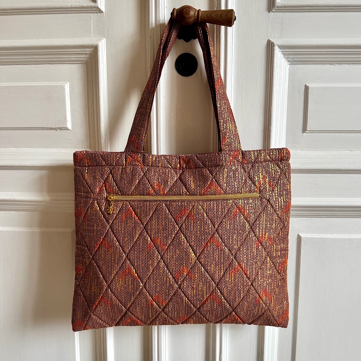 Quiltet skuldertaske med udvendig lomme – smukt print med gulddetaljer