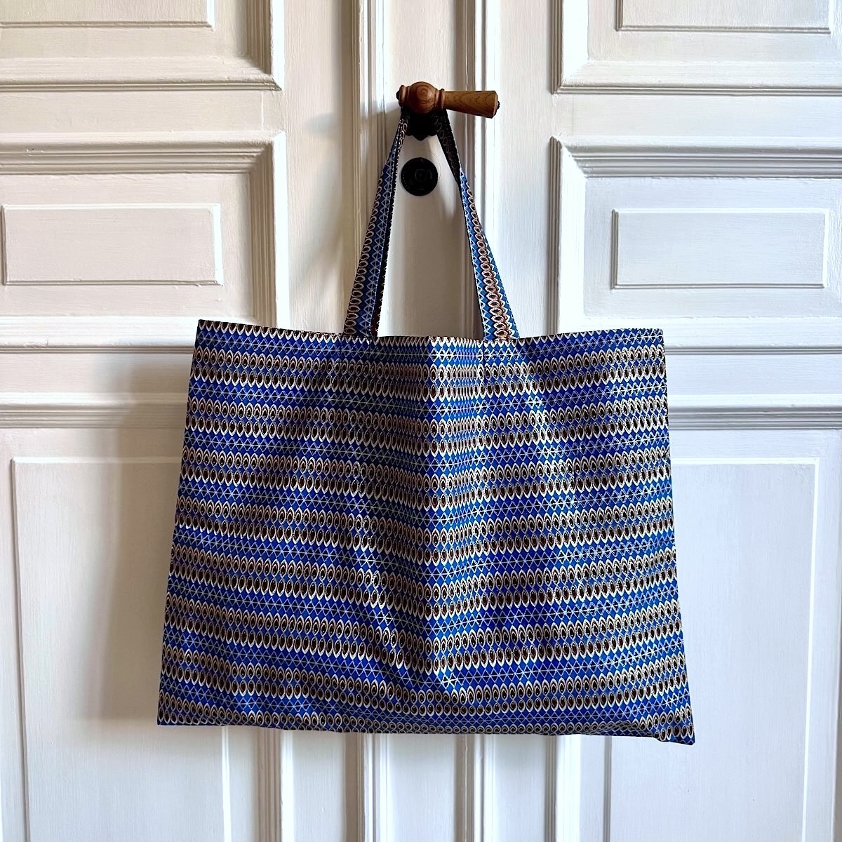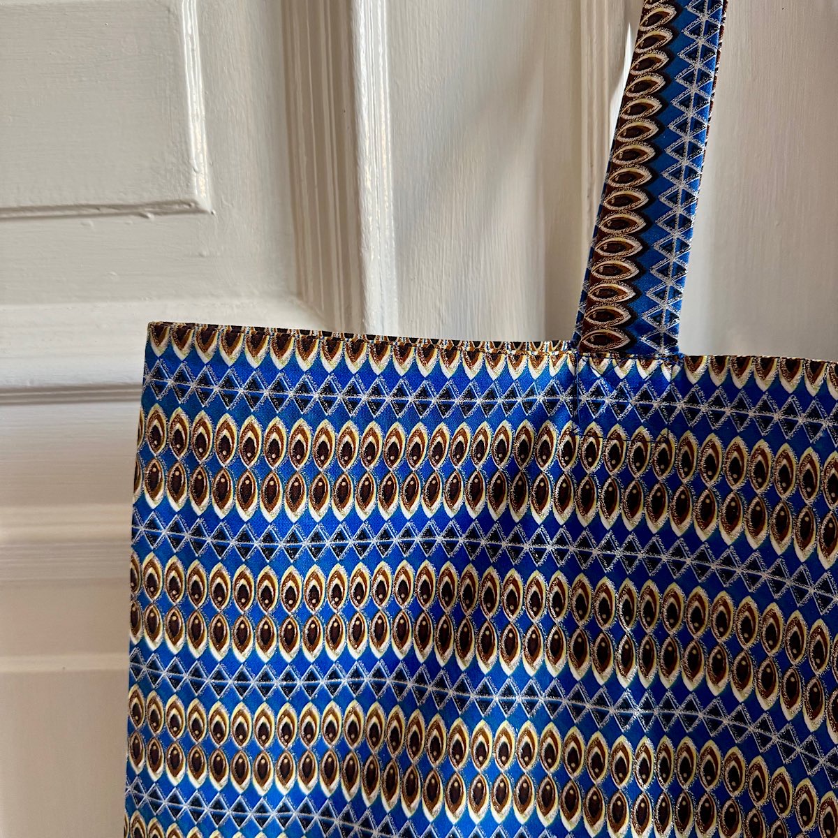 Stort stofnet i smukt afrikansk print med fine detaljer og glimmer. Tasken har god plads til alle dine daglige ting. Den er behagelig at bære og fungerer godt som taske til f.eks. sport, indkøb eller som en afslappet weekendtaske.